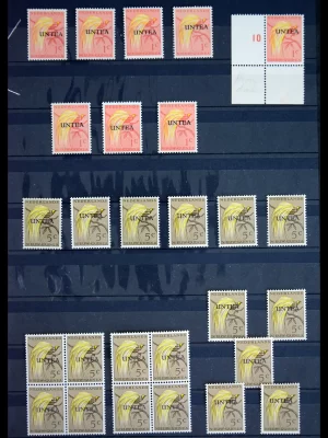 €400,00Postfrisse verzameling van zegels met kleine UNTEA opdrukken in aantallen, ook 3 poststukken met grote UNTEA opdruk, op insteekbladen in map. Cataloguswaarde €3.600+.