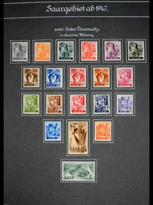 Fantastische postfrisse collectie in mooie kwaliteit, zeer uitgebreid verzameld, met ook de Urdruck serie gekeurd, veel uitgaven in blokken van 4 en/of met brugparen, blok 1 en 2 meervoudig, opgezet in oud album met beschrijvingen. Zelden een zo’n mooie Saar collectie gezien!!