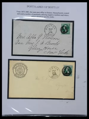 €1.500,00Mooie speciaalverzameling “Postmarks of Boston” met negatieve letter- en nummerafstempelingen voornamelijk op brieven in multomap. Ex. collectie Jim Lays.