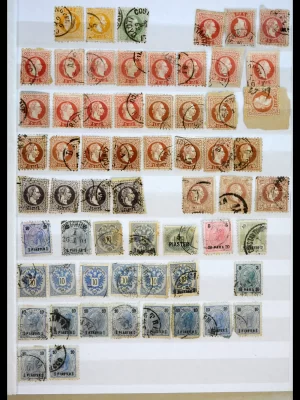 €300,00Verzameling van meer dan 200 klassieke Turkse zegels met afstempeling in Syrië in frisse kwalitiet op insteekbladen met beschrijvingen in map.