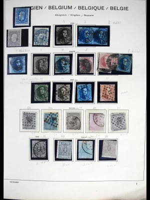 €850,00**/*/0 verzameling met goed gevuld klassiek gedeelte, met o.a. de eerste emissies, 1849 40c. in paar (1x) en als los nummer (2x), 1928 eerste Orval-serie compleet met afstempeling postzegeldagen**, Congo 1886 5 Francs*, luchtpost, etc., in Schaubek album.