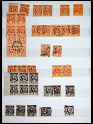 €1.100,00Prachtige klassieke speciaalverzameling met plaatreconstructies, plaatfouten, variëteiten, deels ongetand, stempels, prachtige brieven w.o. mengfrankering 7c 1e emissie en 3c 2e emissie op brief naar Engeland (met cert), 2e emissie brief met 1c en 3x 3c naar Frankrijk etc. etc. op albumbladen, in map.