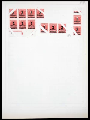 €1.250,00Compleet postfris vel van de 10 op 5pf, met type I, II en III samenhangend, plaatfouten, HAN nummer, diverse zegels verschoven opdruk, zeer indrukwekkend geheel!! Enkele ouderdomsgebreken (mist linker velrand, paar roestpuntjes), uitermate zeldzaam, cat.w. 6000+++ EURO!!!