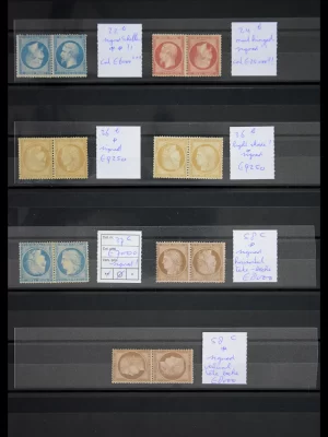 €9.000,00Zeer indrukwekkende **/*/0 collectie, nagenoeg compleet met vrijwel alle toppers aanwezig in meest mooie kwaliteit w.o. 1849: 10c t/m 1fr, 1853/1860: 1c t/m 1fr, 1867: 5fr, 1c t/m 80c piquage Susse, Bordeaux 1870 t/m 80c, uitgebreid Pax en commerce met de dure uitgaven, tevens 1c Pruisisch blauw(?) orphelins t/m 5fr+5fr, 10c mineraline, Bordeaux en Le Havre opdrukken, luchtpost 1/2, uiterst zeldzame brief met beide 10fr luchtpost opdrukken, blok 1/3, beide 50fr luchtposten, port inclusief de zeldzame 1881/1892 serie 1c t/m 5fr (2fr en 5fr met cert), andere toppers back of the book, in insteekboek. Grandioze collectie!!