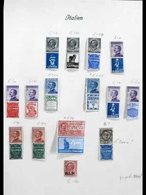 €900,00Complete gebruikte collectie zegels met reclame-aanhangsel, waarden 15c t/m 1 lire gebruikt in nette kwaliteit met alle hele dure zegels, op albumblad, in map. Sassone cat.w. 10.400 EURO!!