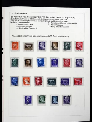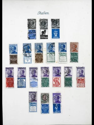 €450,00Speciaal verzameling emissie “Imperiali” gebruikt, met variëteiten, blokken van 4, op brief, censuurpost, luchtpost, etc., op blanco albumbladen met beschrijvingen in ringband.
