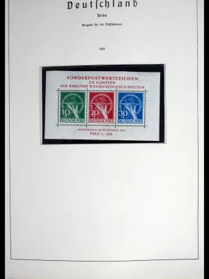 €1.400,00Keurige ongebruikte en postfrisse verzameling Duitse zones, Berlijn, DDR, en BRD, met veel betere blokken, zoals Berlijn blok 1**, DDR alle 4 Karl Marx blokken, 1949 Goethe blok **, en series, waaronder BRD 1951 Posthorn serie compleet met hoge waarden *, opdrukken, postzegelboekjes en bladen uit postzegelboekjes, etc., op blanco albumbladen in klemband.