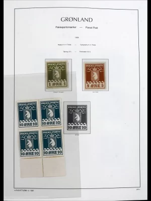 €1.800,00Prachtige postfrisse/ongebruikte complete collectie (er missen een paar onbelangrijke zegeltjes) met alle toppers, 19 zegels pakkeporto ijsberen met tandingen, 1938 serie, 1945 serie, 1945 opdrukserie postfris, 1945 opdrukserie met foute kleuren postfris (hele zeldzame serie), verdere uitgaven vaak dubbel aanwezig, ook blokken en veel complete velletjes Julzegels, in duur Leuchtturm album. Prachtige collectie met een enorme cat.w.!