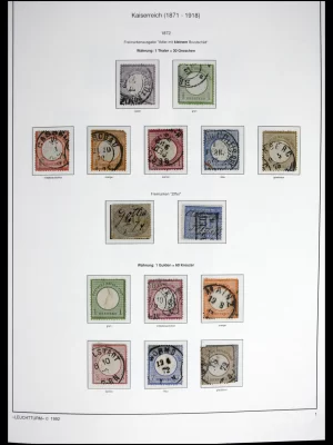€2.850,00Vrijwel complete gebruikte collectie + extra’s, in meest nette kwaliteit w.o. 1872 Brustschilder t/m 18kr(!), 5 mark Reichpost, goed infla, dure uitgaven jaren 20/30, alle blokken gebruikt inclusief het hele zeldzame blok 2 (iets verkleind formaat), verder beter back of the book, in oud Leuchtturm album. Gigantische cat.w.!!