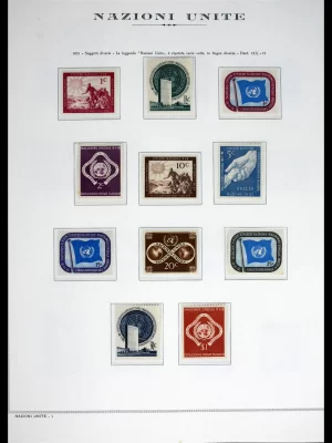 €850,00Mooie complete postfrisse collectie VN van alle drie kantoren: New York, Wenen en Geneve, ook diverse extra’s, persoonlijke velletjes etc. etc. in 6 dure Marini albums en duur Leuchtturm albums (paar zegels getint), in grote doos. Gigantische cat.w. en aanschafwaarde!