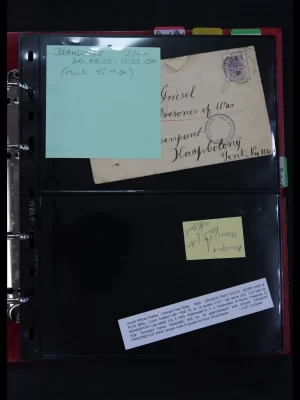 €1.100,00Fantastische collectie krijgsgevangenen post, enkele postfris, maar veelal gebruikt op briefstukjes, tevens brieven, in zelfgemaakt album.