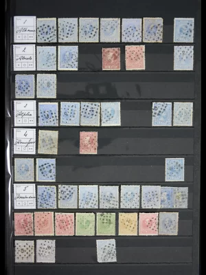 €1.000,00Verzameling van 1.500+ zegels met veel puntstempels, kleinrond en langebalk stempels, waaronder mooie en schaarse, op briefstukjes, etc., in 2 dikke insteekboeken.