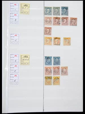€2.000,00Zeer mooie gespecialiseerde deels dubbele collectie in mooie, frisse kwaliteit w.o. 1/3, 1867, 1869 en 1872 met tandingen, 1876 cijfer met plaatfouten, kroningsgulden, bontkraag compleet ongebruikt inclusief tete-beches, jaren 20/30 met variëteiten, blokken van 4 w.o. postfris, 1923 t/m 5 gulden, back of the book met goed roltanding, meeste uitgaven zowel ongebruikt als gebruikt aanwezig, porten gespecialiseerd met tandingen en plaatfouten etc. etc. alles mooie opgezet met beschrijvingen, in ouderwets Excelsior album. Fantastische collectie met heel veel beter en schaars materiaal aanwezig!!
