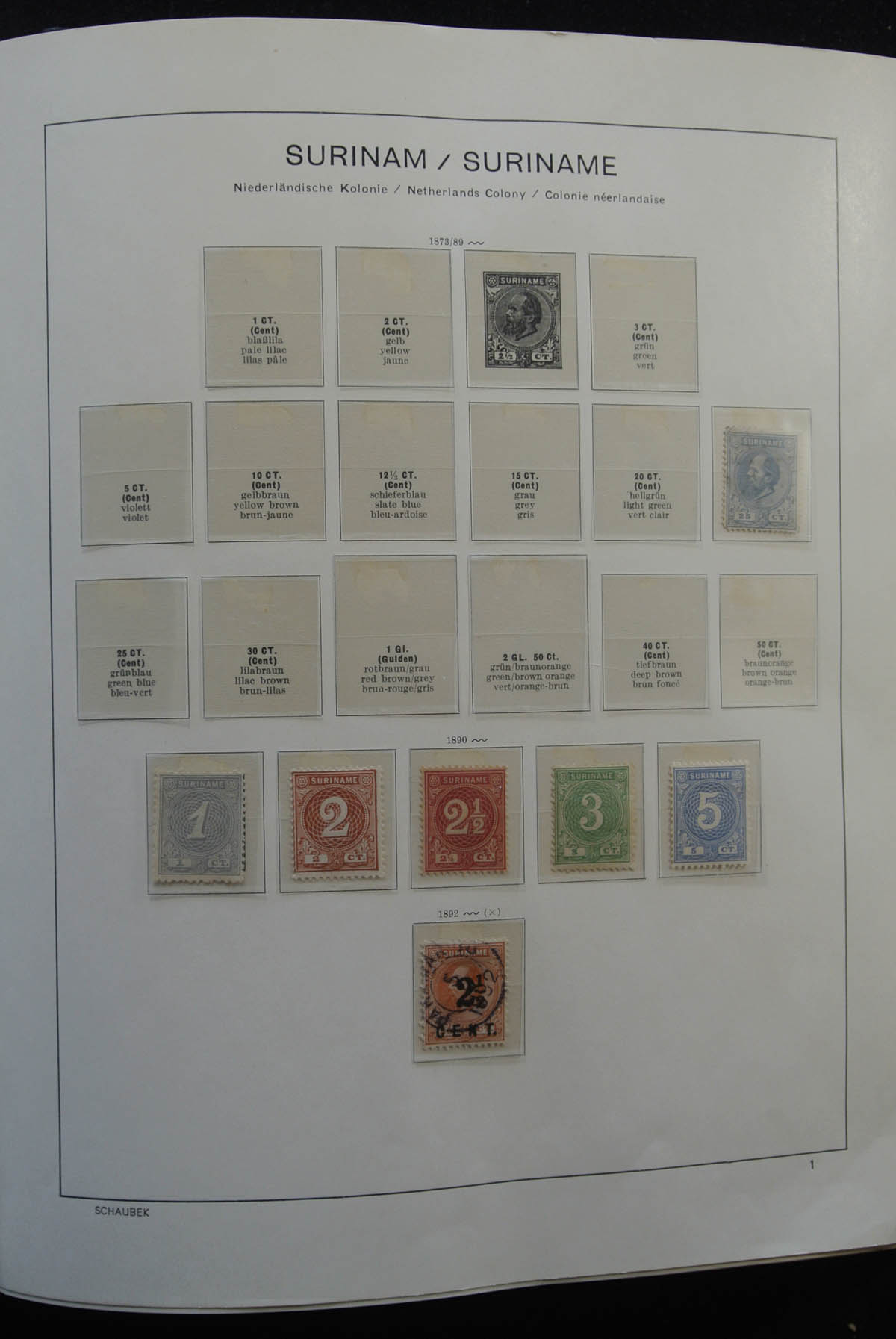 Aardig gevulde, postfrisse en ongebruikte collectie Suriname 1873-1978 in Schaubek album.