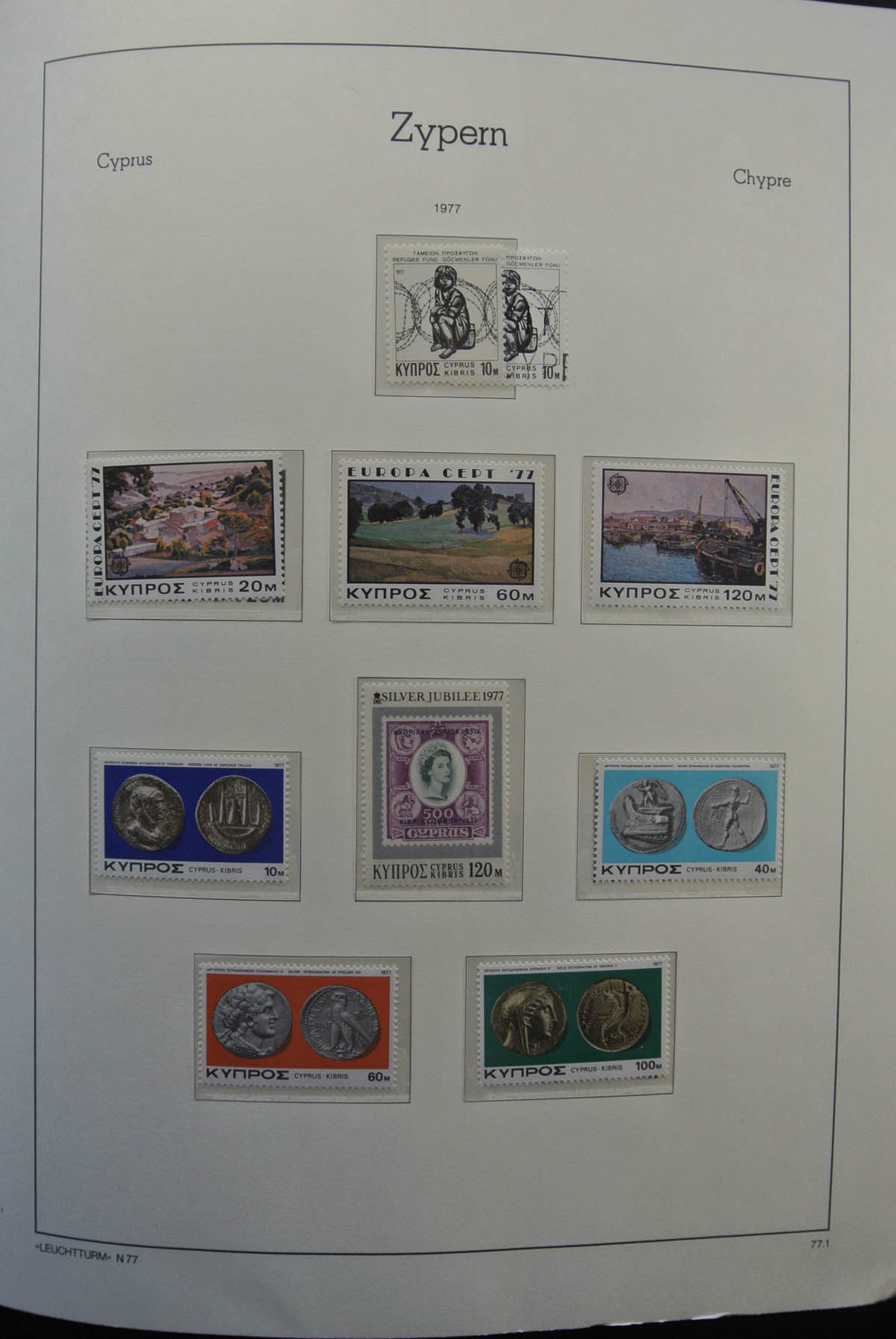 Postfrisse, complete (zonder de 1995 opdruk op blok) collectie Cyprus 1977-2011 in Leuchtturm album en tevens een complete, postfrisse collectie Turks Cyprus 1974-2011 in Leuchtturm album.