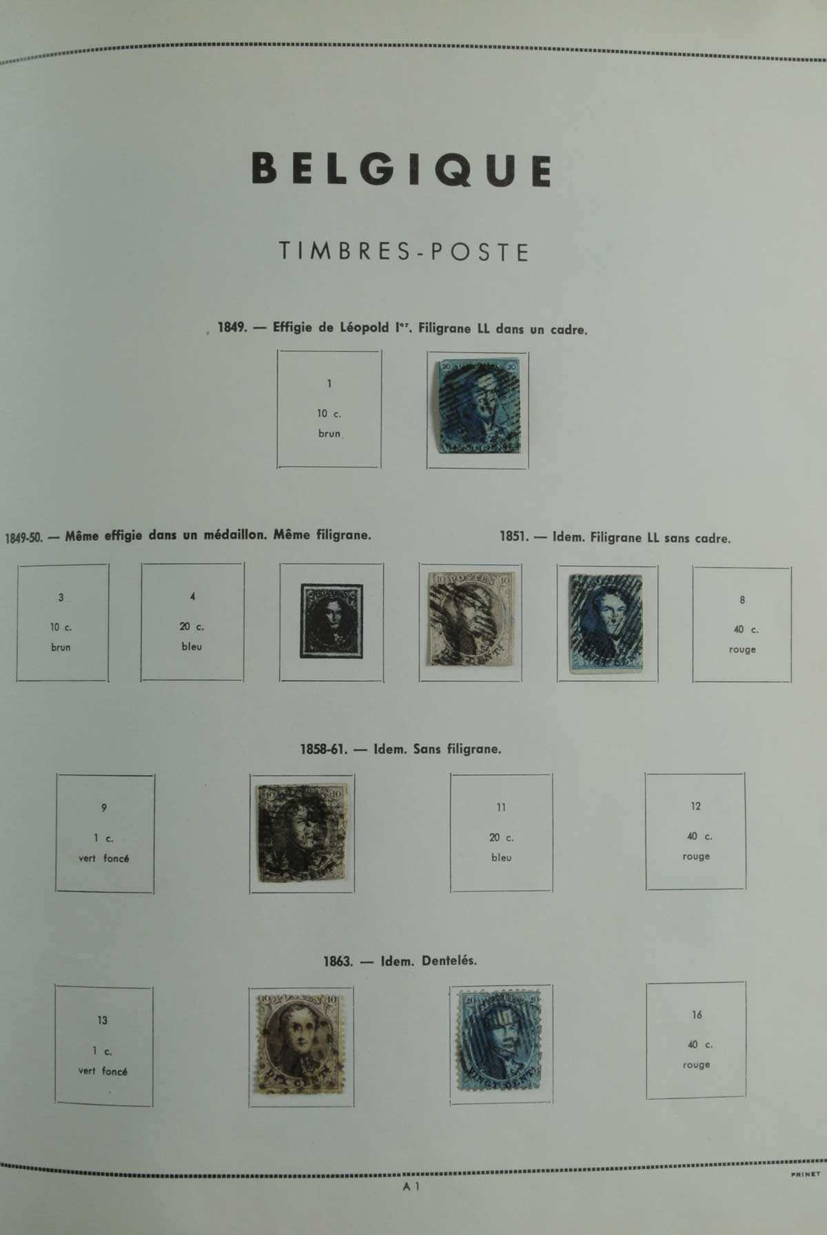 Redelijk gevulde, postfrisse, ongebruikte en gebruikte collectie België 1849-1974 in oud Prinet album.