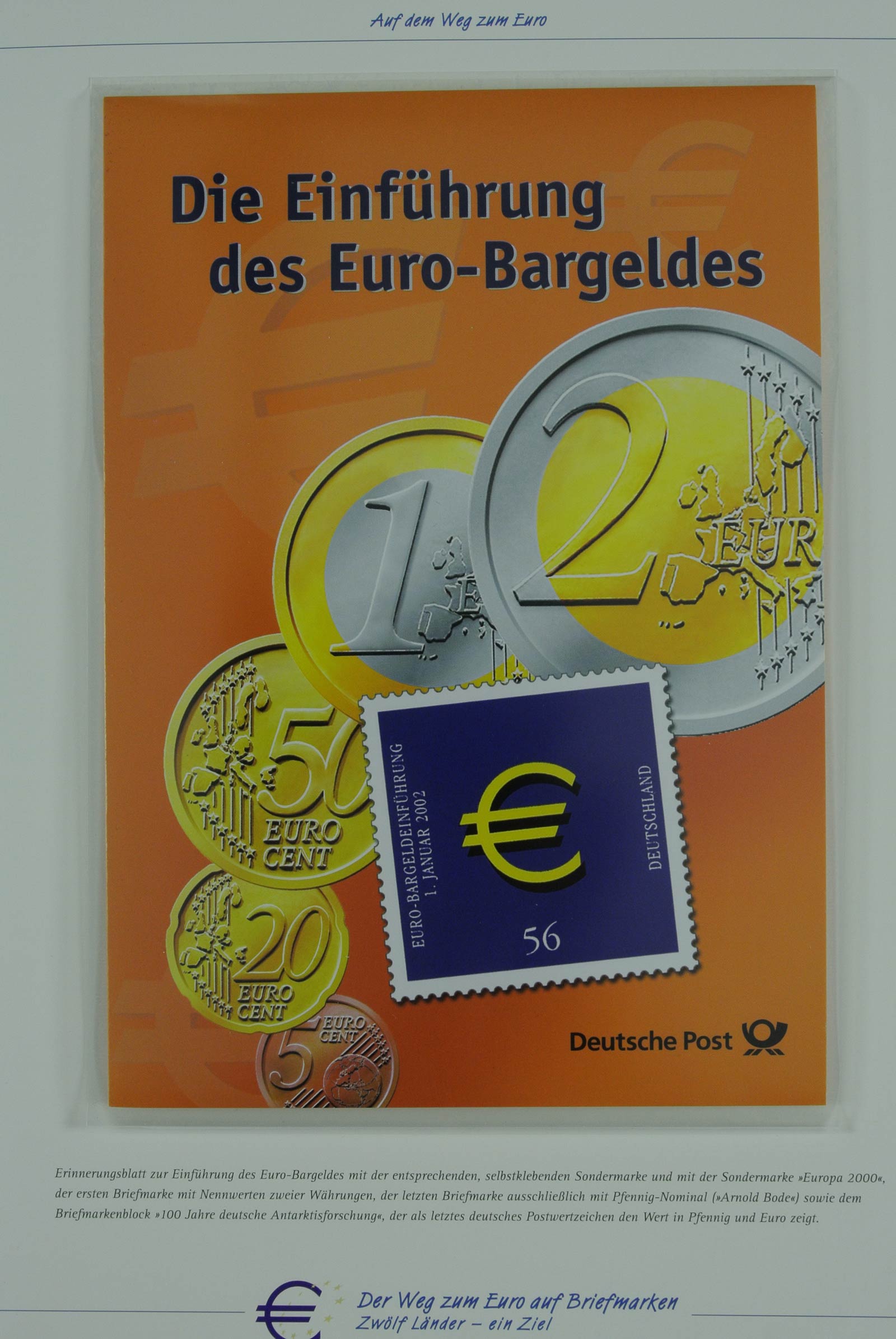 Thematische collectie invoering euro met veel nominaal materiaal, oudere zegels, speciale brieven etc. in 2 speciale albums.klik hier voor alle foto’s (opent in apart scherm).