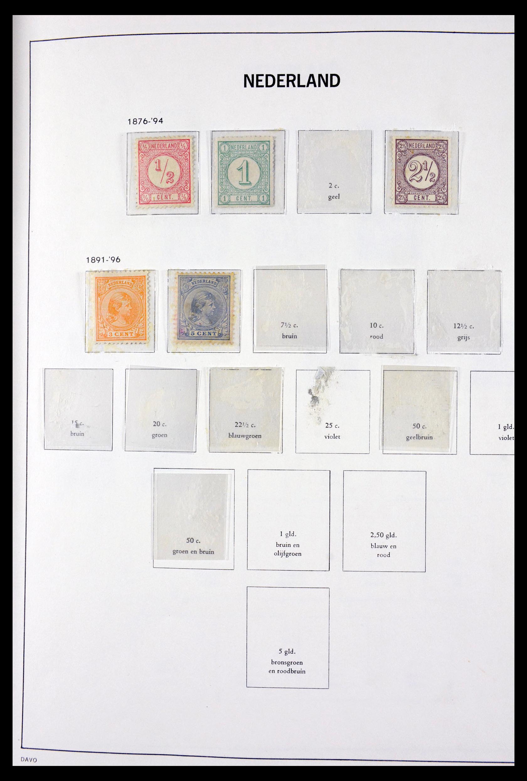 Aardig gevulde, voornamelijk postfrisse en ongebruikte collectie Nederland 1876-1969 in Davo cristal album, waarin o.a. (NVPH no’s): 279-282*, 550-555**, 556-560**, 563-567**, 568-572**, etc.