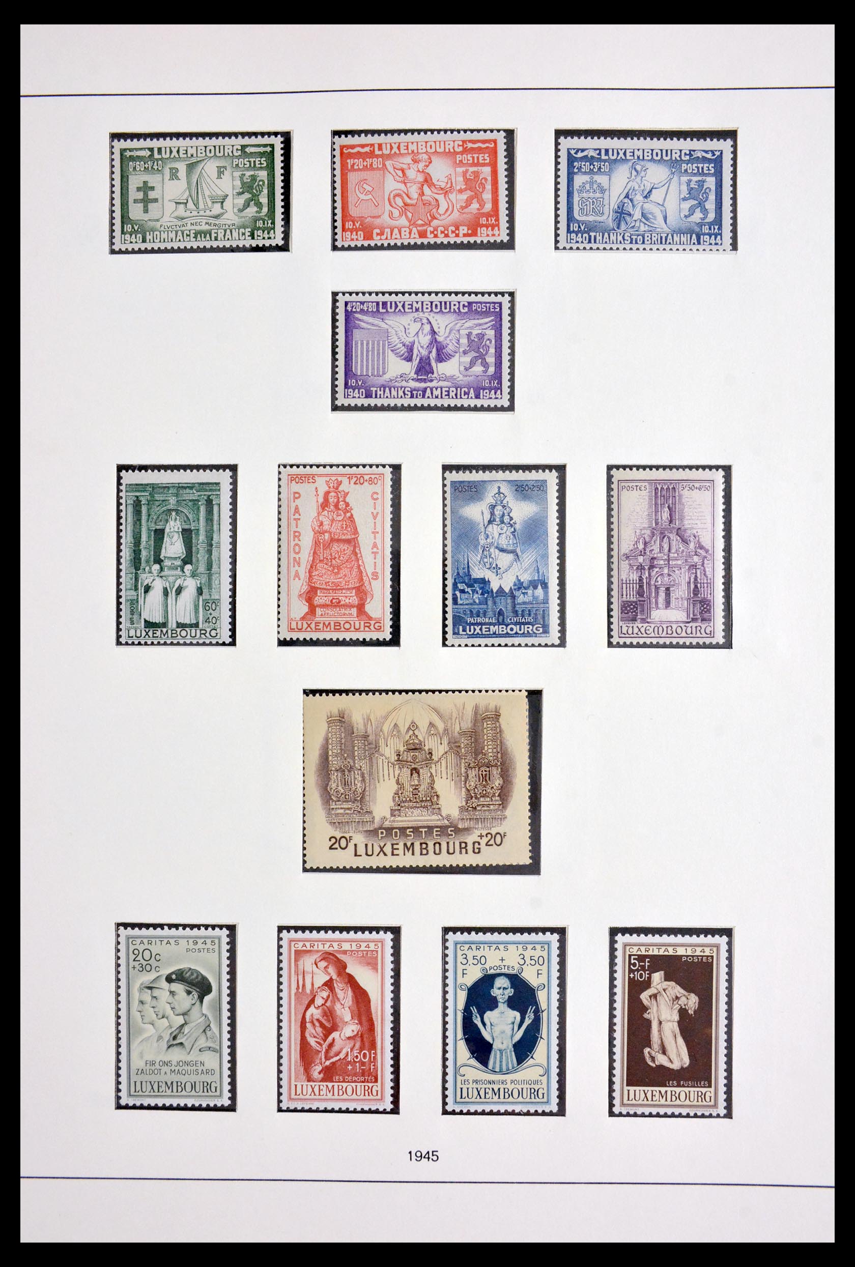 Vrijwel complete, geheel postfrisse postzegelverzameling Luxemburg 1945-2017 inclusief alle dure series en blokken in 4 luxe Safe albums. Ook diverse gestempelde doubletten aanwezig.