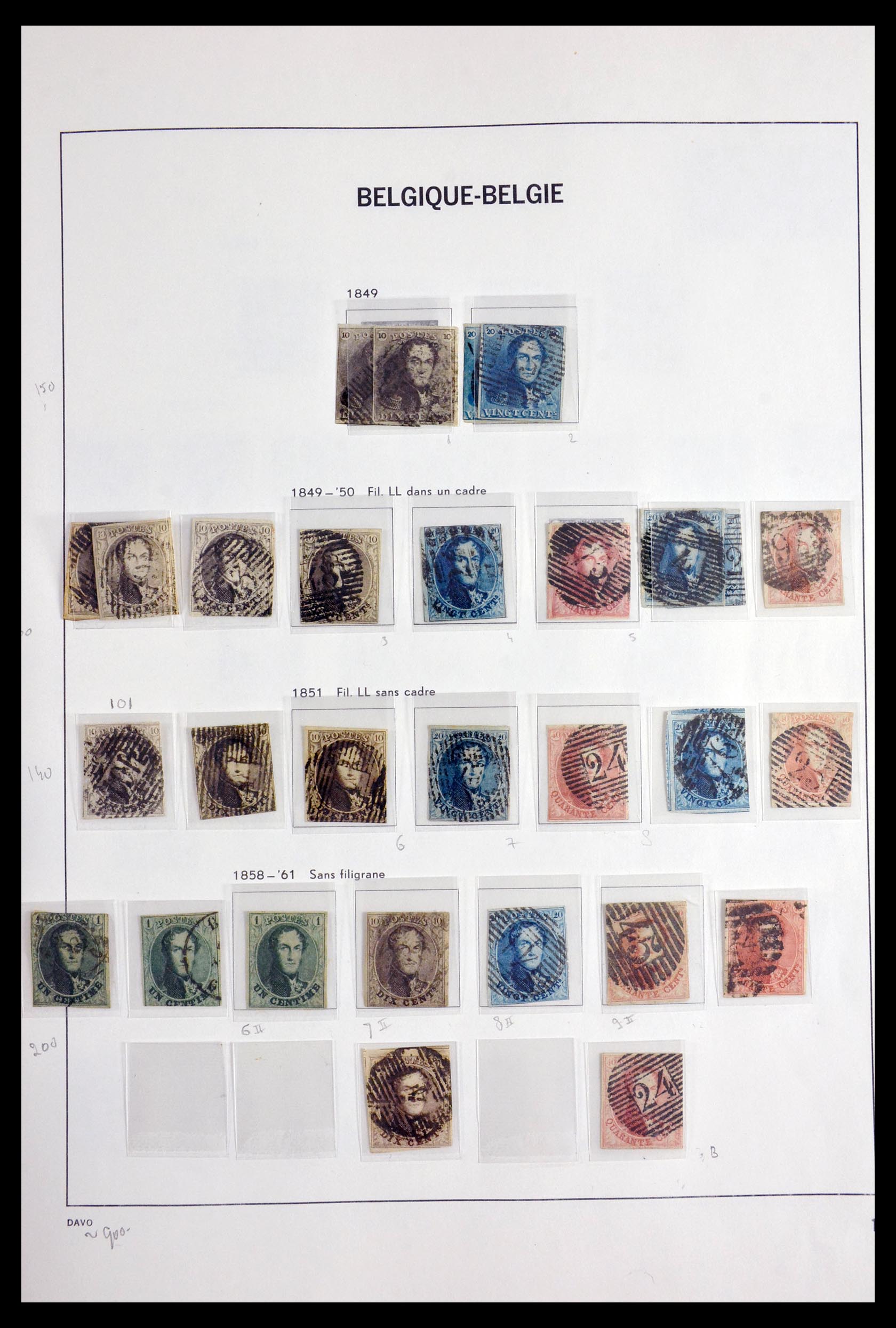 Zeer goed gevulde, postfrisse, ongebruikte en gestempelde postzegelverzameling België 1849-2003 in 3 Davo albums, waarin diverse betere zegels zoals (Michel no’s): 34 (5 Frank leopold II), 127 (5 Franken), 210-217*, 235-243 II* (Orval met violette opdruk), 287, 291-297*, 305-313*, 315-321*, 342-343*, 347-353*, 366-372* (371 gestempeld), 386-392*, 941-946**, 967-972**, 976-978**, 989-991**, 992-994**, 995-1000**, spoorwegzegels 58-77*, 298*, 325-343**, 345**, 356**, 357-378** etc. Ook diverse privé uitgaven en speciale stempels aanwezig. Hoge catalogus waarde!