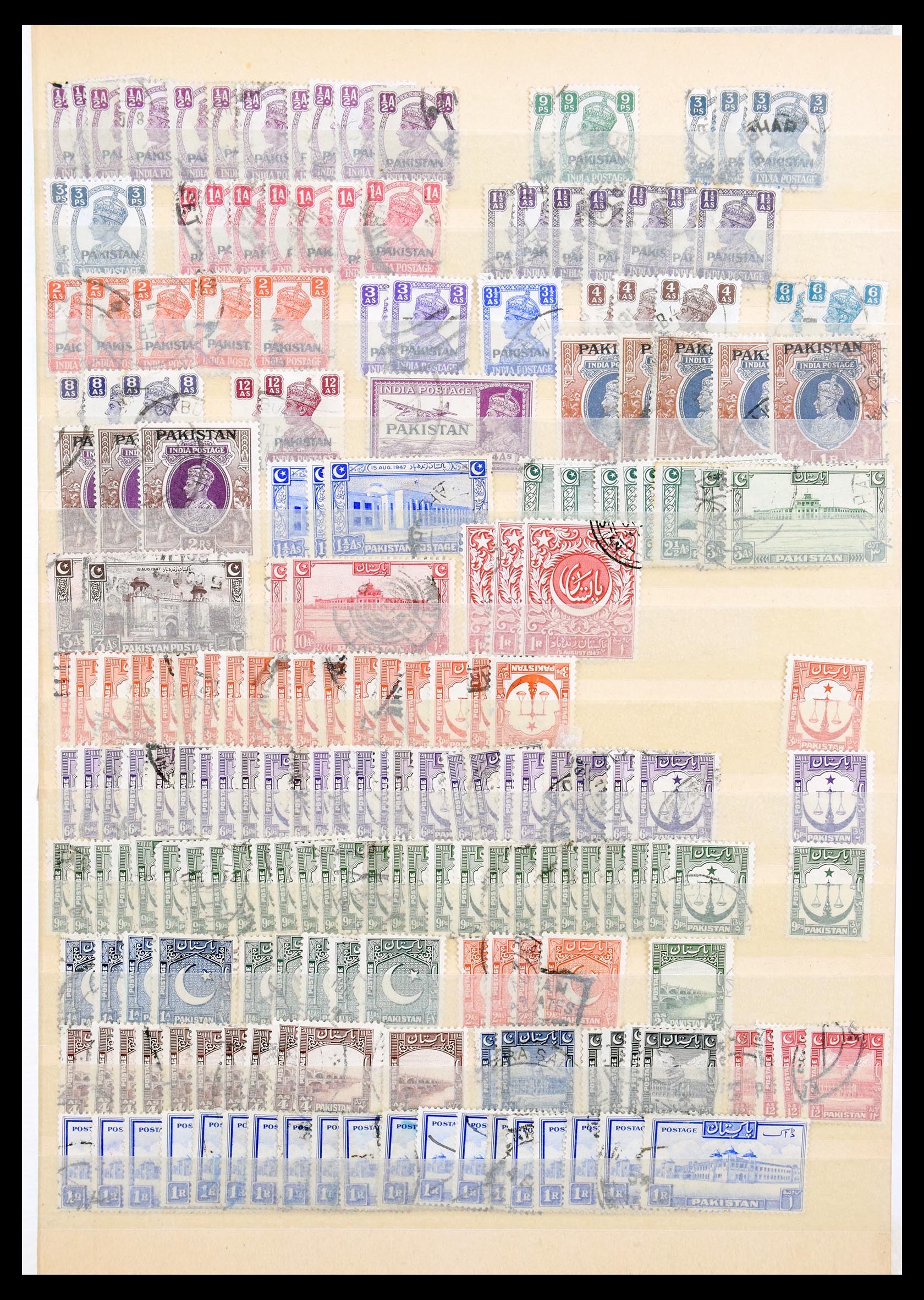 Aardig gevulde, gestempelde partij postzegels van Pakistan 1947-1982 in insteekboek.