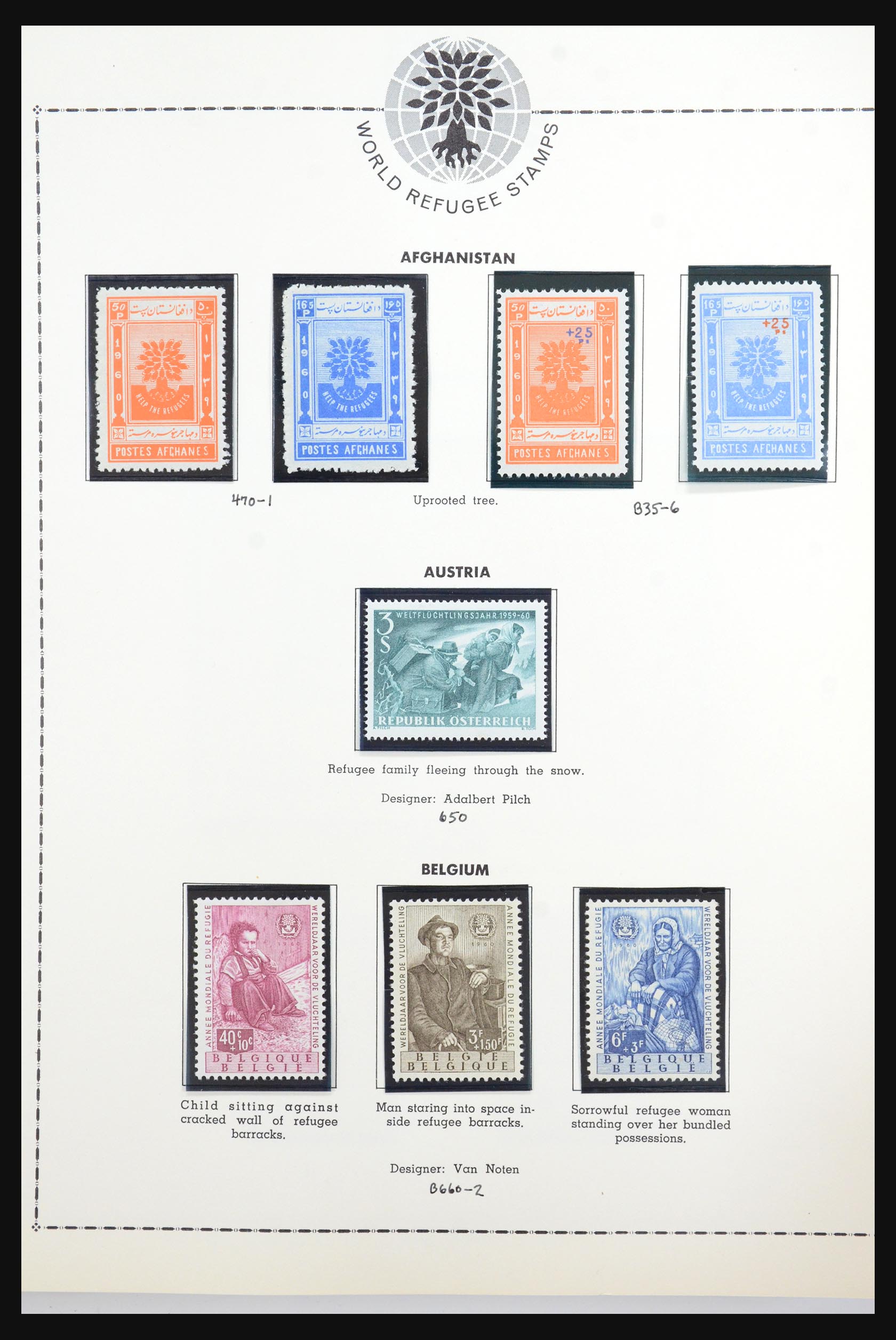 Voornamelijk postfrisse en ongebruikte, thematische postzegelverzameling Vluchtelingen 1926-1970 in 2 albums, waarin ook veel eerstedagenveloppen.