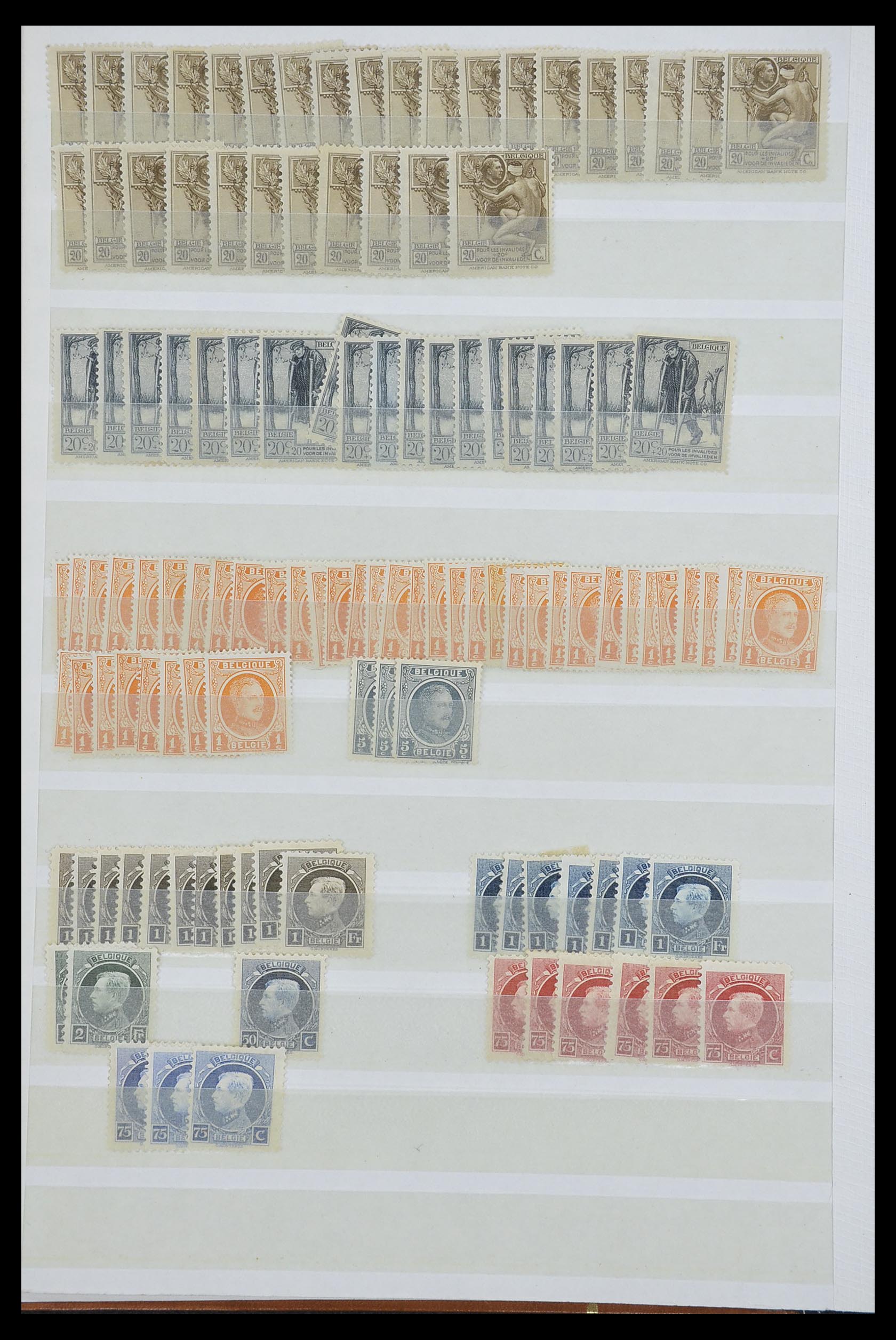 Postfrisse en ongebruikte uitzoekpartij België 1869-1985 in 2 insteekboeken en op losse stockbladen in doosje, waarin ook vellen, veldelen, blokken, back of the book etc.