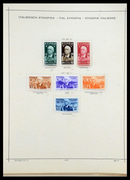 Aardig gevulde, voornamelijk ongebruikte postzegelverzameling Italiaanse koloniën 1893-1940 op albumbladen in map.