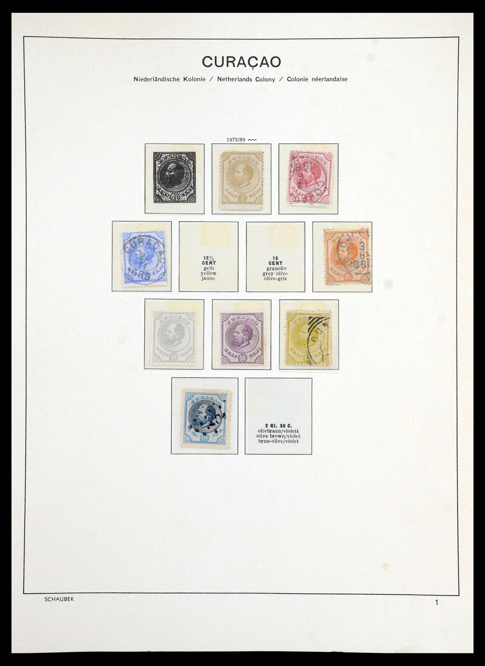 Goed gevulde, postfrisse en ongebruikte (klassieke deel ook gestempeld) postzegelverzameling Curaçao en Nederlandse Antillen 1873-1996 in 2 Schaubek albums, waarin betere zegels zoals (NVPH no’s): 11, 42-43(*), 81*, 89-99*, 104-120*, luchtpost 18-25*, etc. Tevens Aruba 1986-1997 aanwezig.
