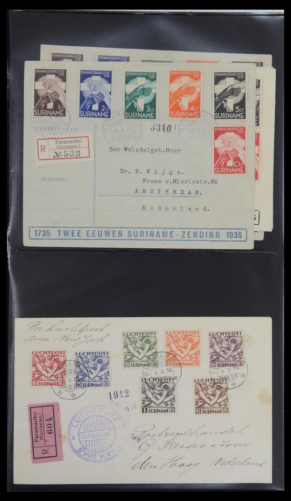Aardige verzameling brieven en FDC’s van Suriname 1930-1969 in 2 albums, waarin veel (betere) FDC voorlopers laatste dag van geldigheid, luchtpost etc.