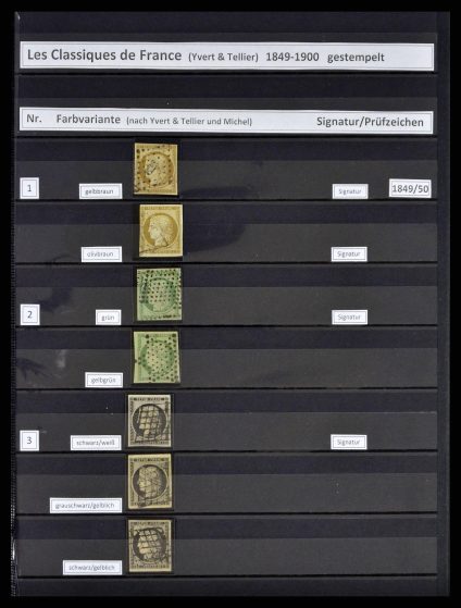 Prachtige, voor 99% complete, voornamelijk gestempelde, enigszins gespecialiseerde postzegelverzameling Frankrijk 1853-1948, inclusief veel betere zegels zoals (Yvert no’s): 6 (2x, waarvan 1x certificaat Diena), 9 (2x), 33 (2x, waarvan 1x dun plekje), 39-49, 62, 76, 148-155, 162-169, 182 (Bordeaux), 216, 229-232, 252, 256, 257A (le Havre), 262B (tanding 11), 269, 321, 398, luchtpost 1-2, 6c (EIPA30), 14, 15, blok 1, 2, 3, port 22, (23-24 beschadigd), 25-27, oorlogszegels 1, etc. in 2 insteekboeken. Zeer hoge cataloguswaarde!