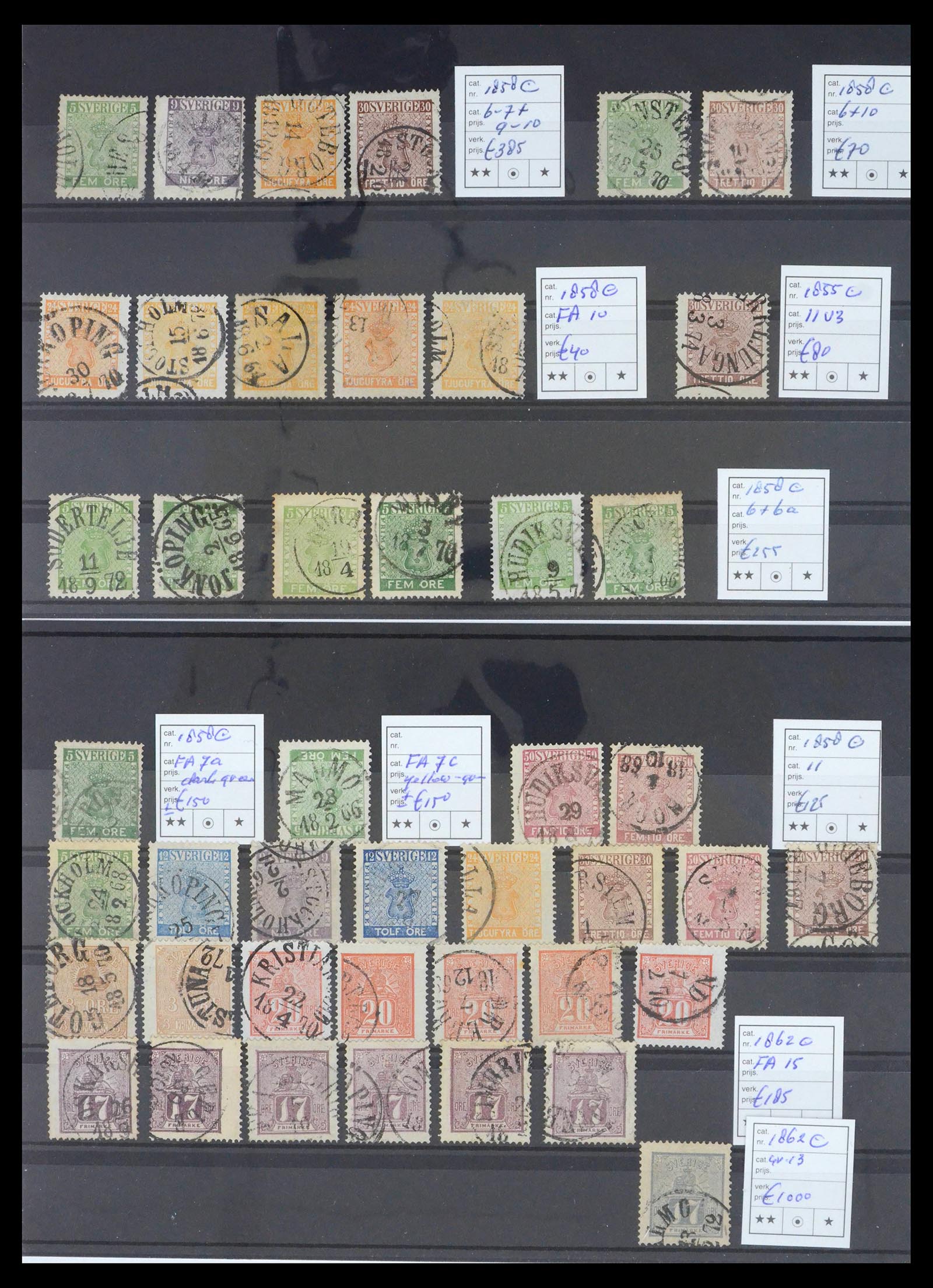 Klassieke zegels van Zweden 1858-1866 met mooie stempels op 2 stockkaartjes. Cataloguswaarde ruim 4500 euro.