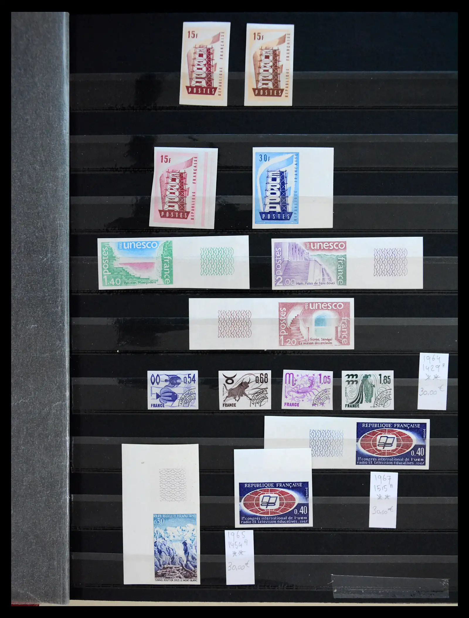 Postfrisse collectie ongetande uitgaven Frankrijk, veel series w.o. betere, veel met velrand, in insteekboek. Cat.w. 3350 euro.
