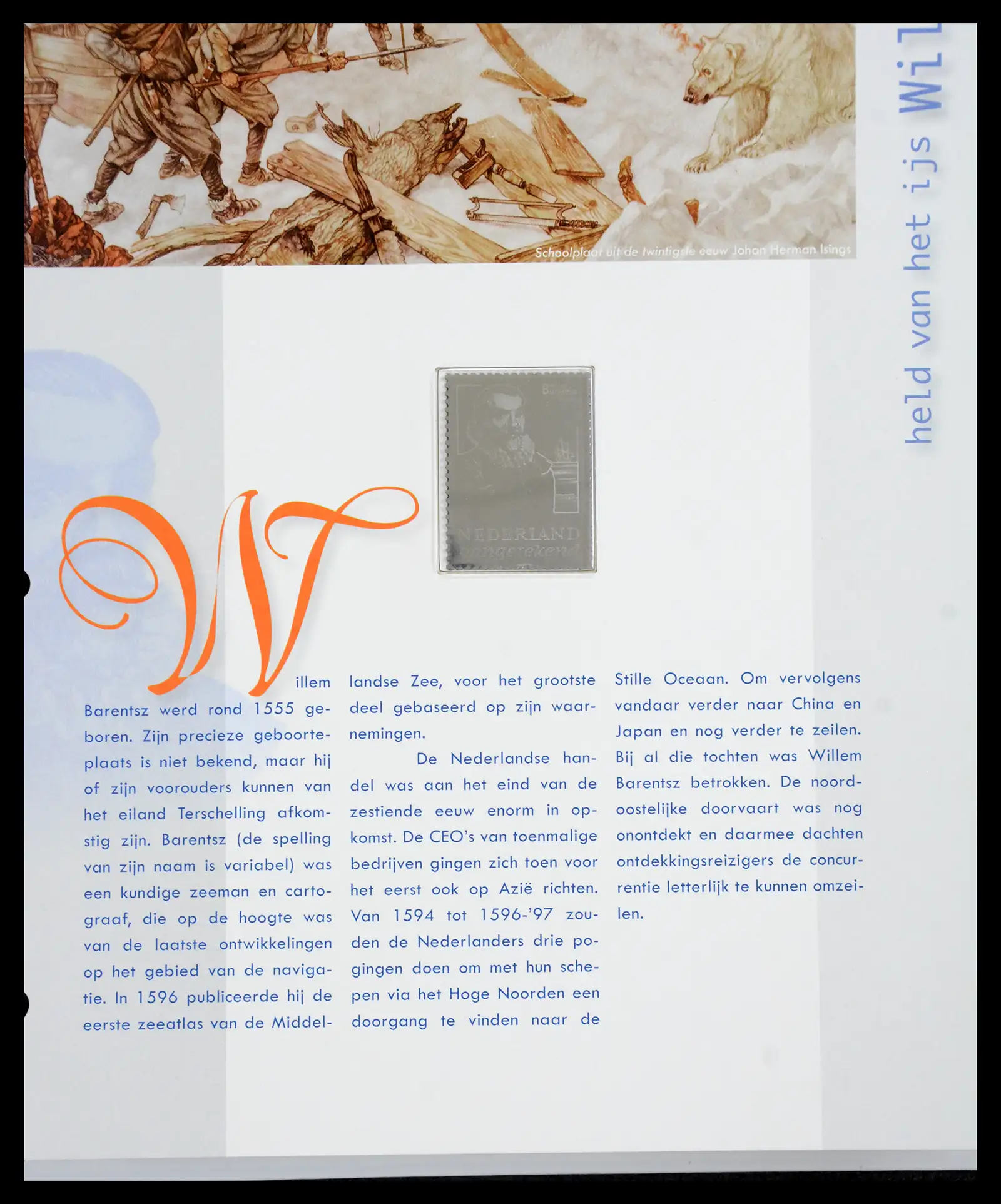 Complete collectie van 12 zilveren zegels met de diverse afbeeldingen van de Nederlandse zeehelden, aangetekend tarief, in album met beschrijvingen