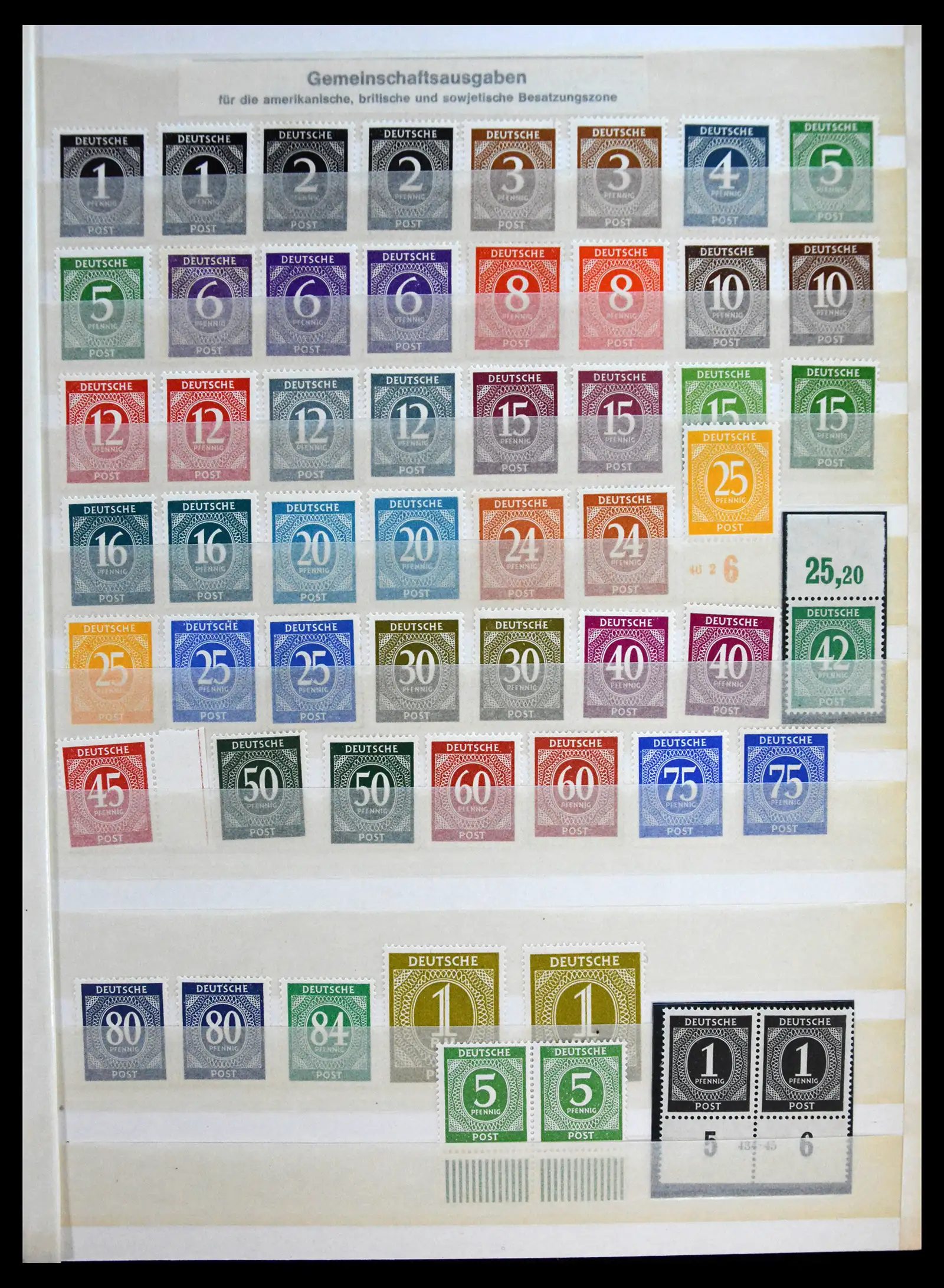 Meest postfrisse en gebruikte dubbele collectie met o.a. de blokken geallieerde zone zowel ongebruikt als gebruikt, Franse zone vrijwel compleet en ook grotendeels dubbel met de dure series en blokken, tevens iets diversen, in stockboek.