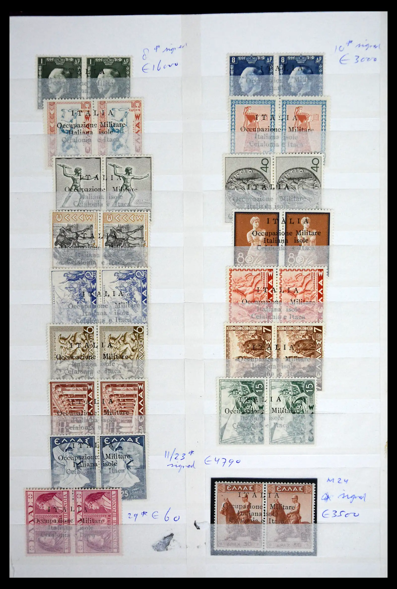Prachtige ongebruikte collectie Italiaanse bezetting van Cefalonia en Itaca, Griekse zegels in paren met opdruk, in mooie kwaliteit, alle zegels met keur, Sassone 8, 10, 11/23 compleet, 24 en 29, op albumblad, in map. Sassone cat.w. 27.350 euro!!