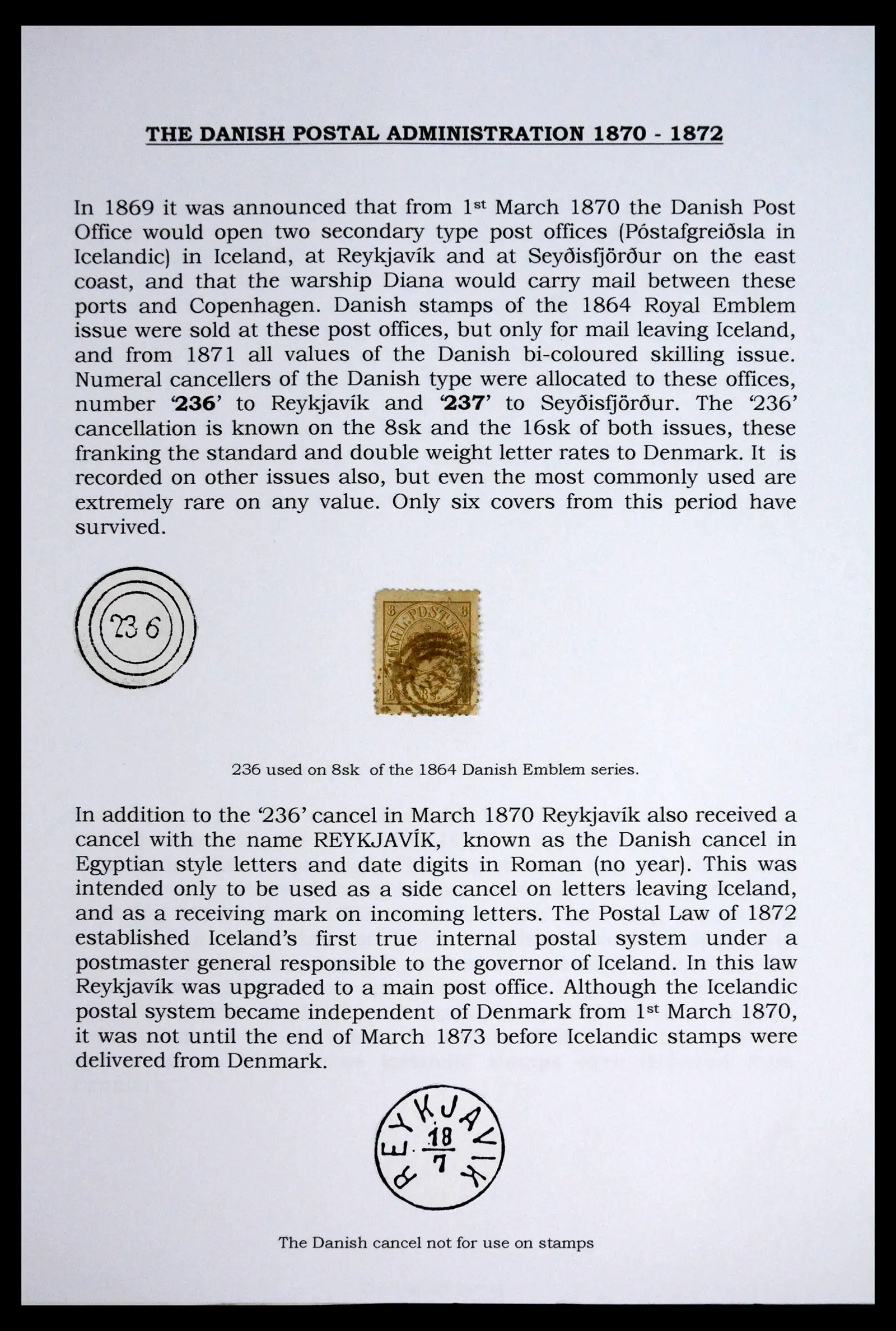 Prachtige speciaalverzameling alle met verschillende afstempelingen van Reykjavik w.o. Denemarken 16sk met ringstempel 236, vele andere klassieke zegels met prachtige centrale afstempeling, heel veel mooie brieven met goede frankeringen, opgezet in 2 albums.